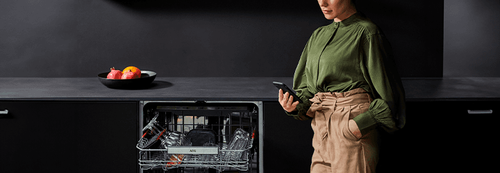 Connectez votre lave-vaisselle à l'application AEG pour accéder à des fonctionnalités supplémentaires, telles que des conseils de développement durable et des rappels d'entretien.