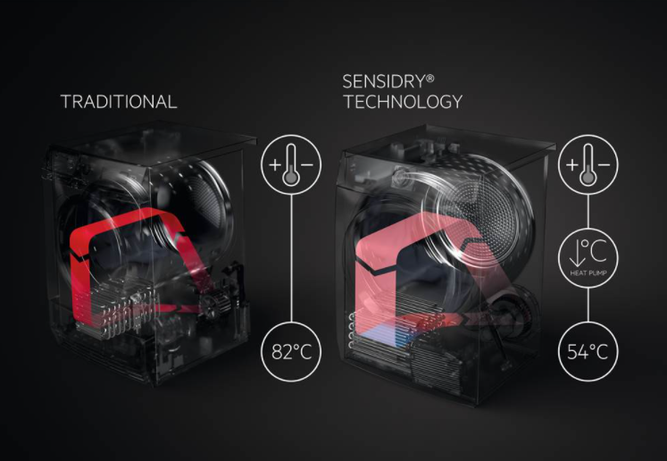 - Les sèche-linge à pompe à chaleur peuvent donner l'impression que la machine ne chauffe pas au début d'un cycle de séchage. En effet, toute l'énergie de la pompe à chaleur est utilisée pour chauffer et évaporer l'eau / l'humidité des vêtements.