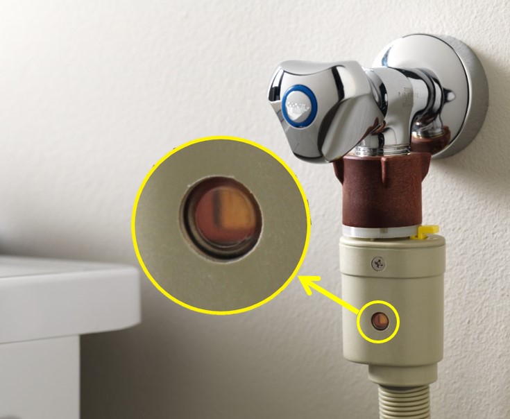 - La fenêtre de visualisation de l'appareil Aquastop du tuyau d'arrivée est rouge clair ou orange.